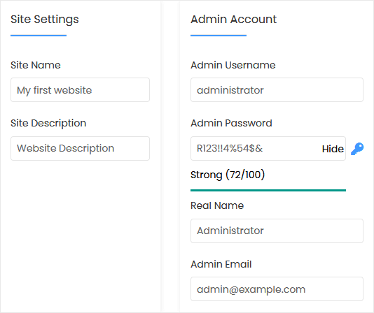 • Admin Username: Your new Joomla username (for security reasons, do not use the administrator or the admin username).