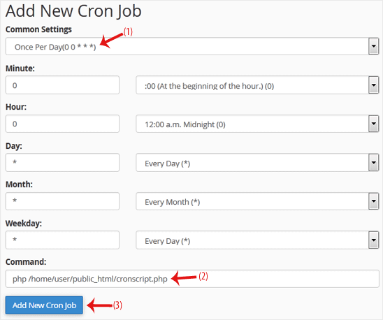 3. Under Add New Cron Job, click on the Common Settings drop-down menu and select an appropriate option such as Once Per Day or another suitable option.