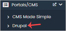 4. On the left side, locate the Portal/CMS category. Click on it and then on the Drupal link that appears.