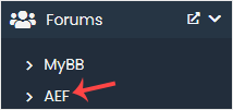 4. On the left side, locate the Forums category. Click on it and then on the AEF link that appears.