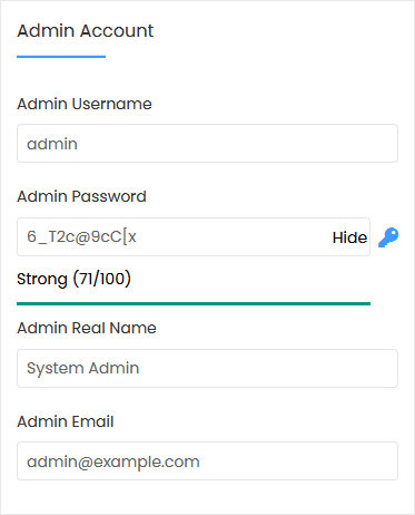 - Admin Real Name: Leave this as it is or use your full name.